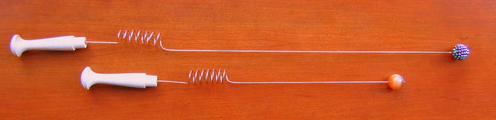Bobbers Bobbers are great tools for transforming energy from non-beneficial to beneficial, and for determining YES and NO answers. Long bobbers are among the easiest tools for beginner dowsers to use. The handles are made of wood, and a bead is attached to the end of the coiled wire to activate the bobbing motion. Each one is uniquely balanced. (about 16 - 18") $20 + S&H